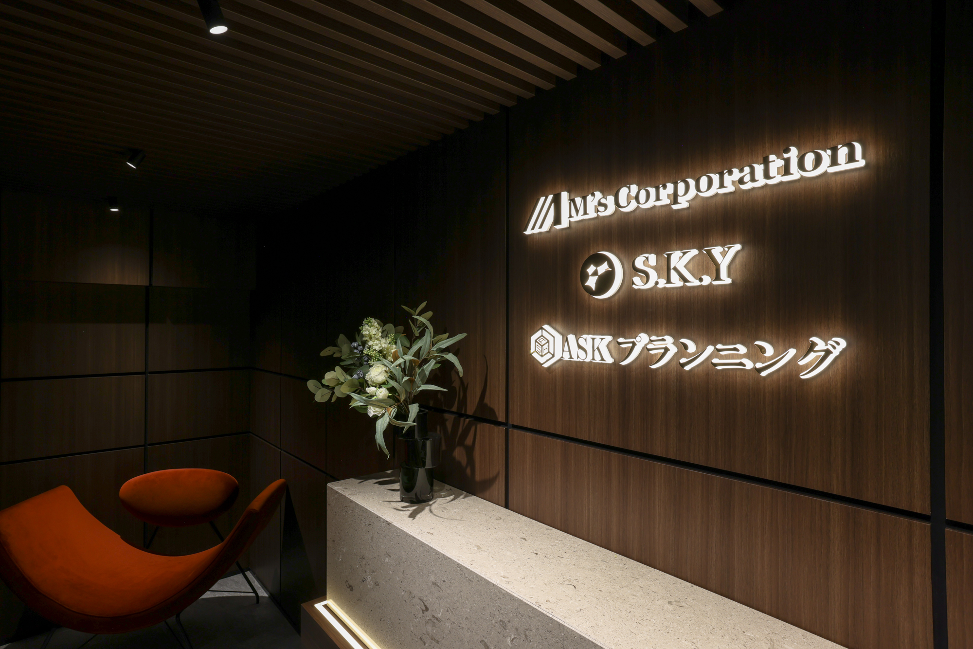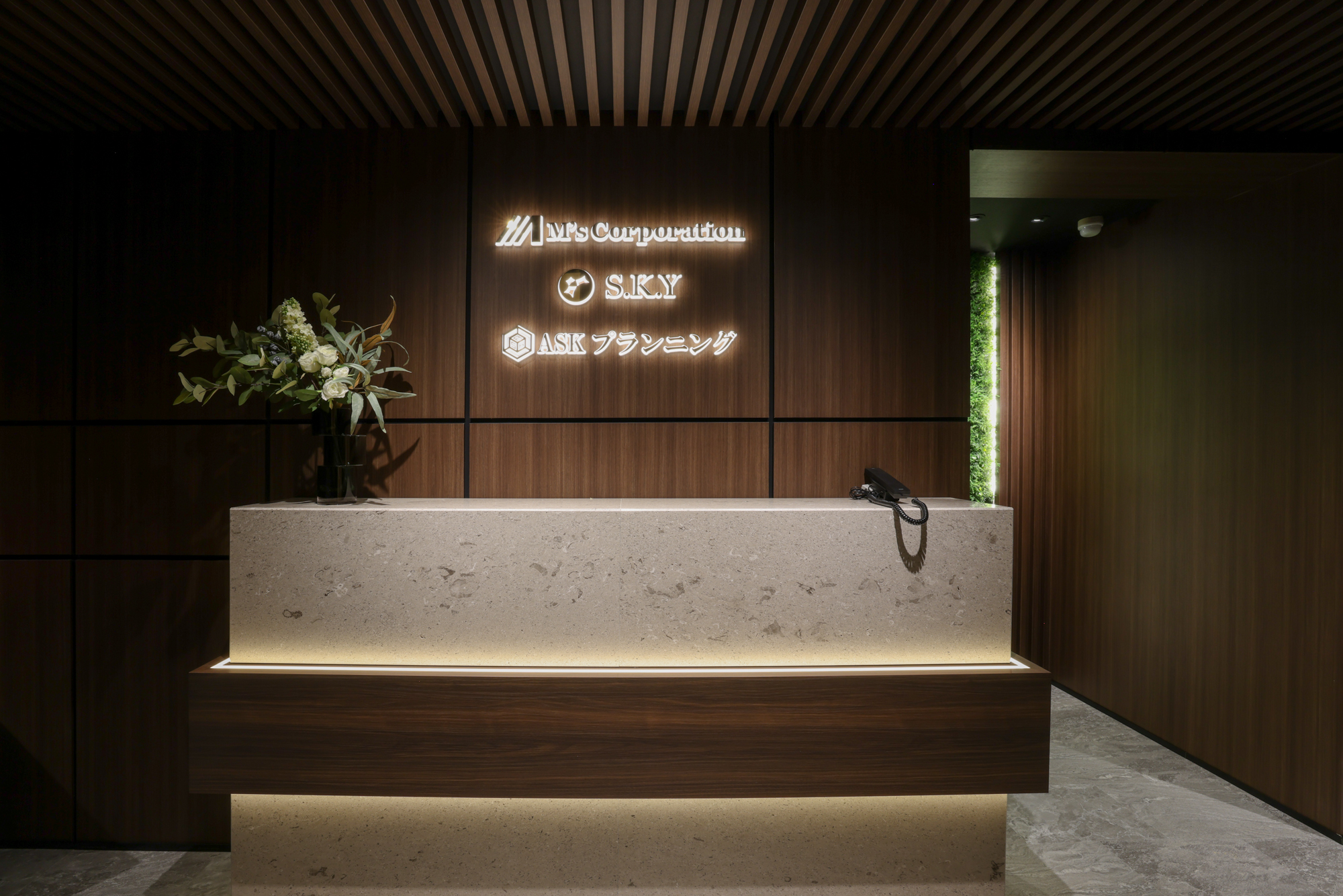 グループ3社の総合受付、来訪者を招く各スペースは、洗練されたモダンな空間を目指しました。