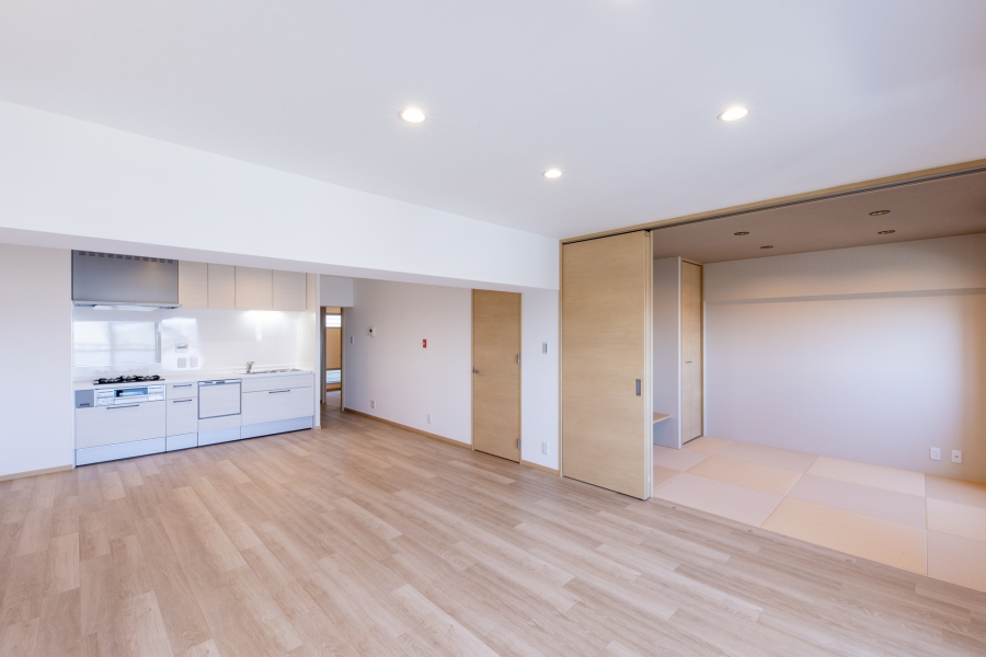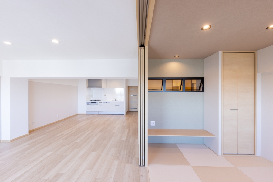スケルトンにし、間取りを変えてWTCLのある洋室、LDKに続く和室、導線を快適にした洗面室を確保した現代の暮らしに快適な間取りに。