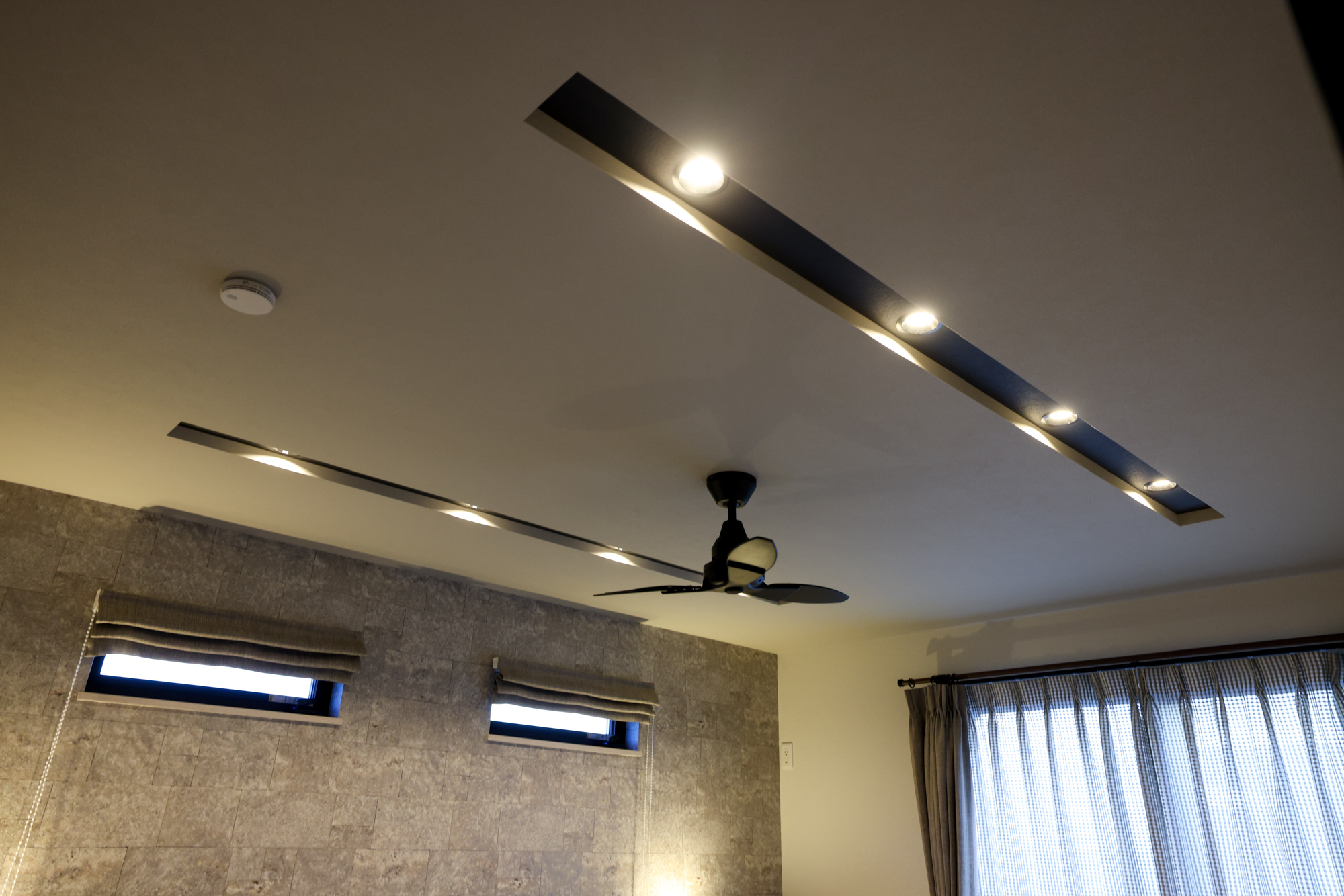 ニッチとアートを組み合わせた意匠の壁面、フロートタイプのテレビボード、スイッチニッチ、タイル等、こだわりの詰まった住まいです。
