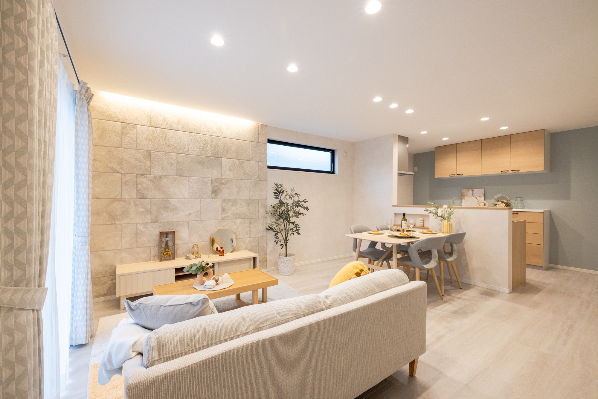 北欧ナチュラルをコンセプトに計画したモデルハウスのリビングです。