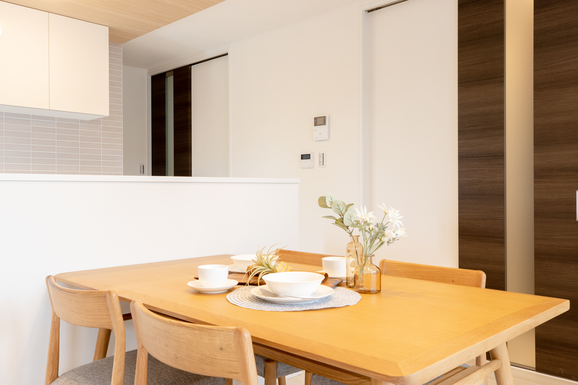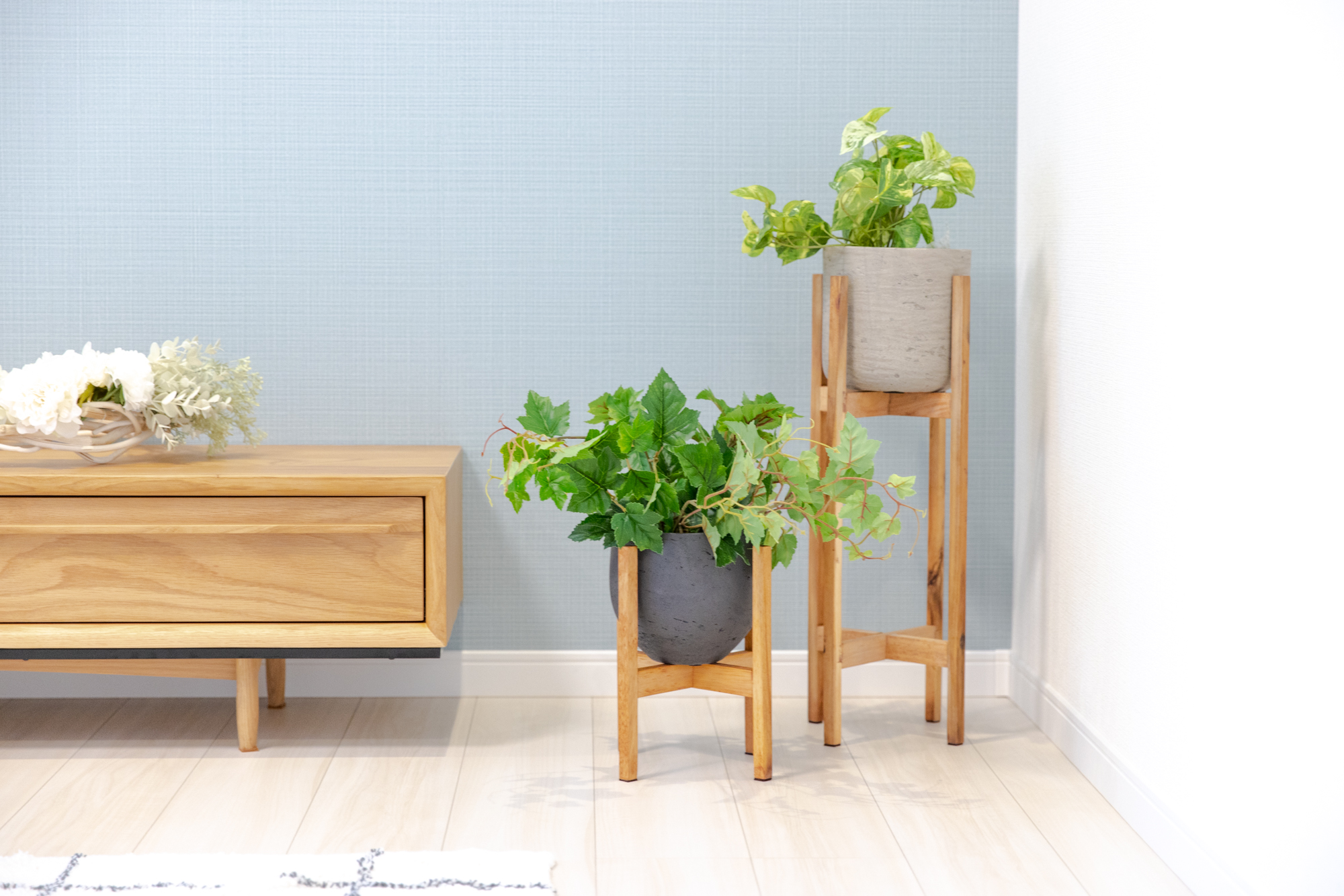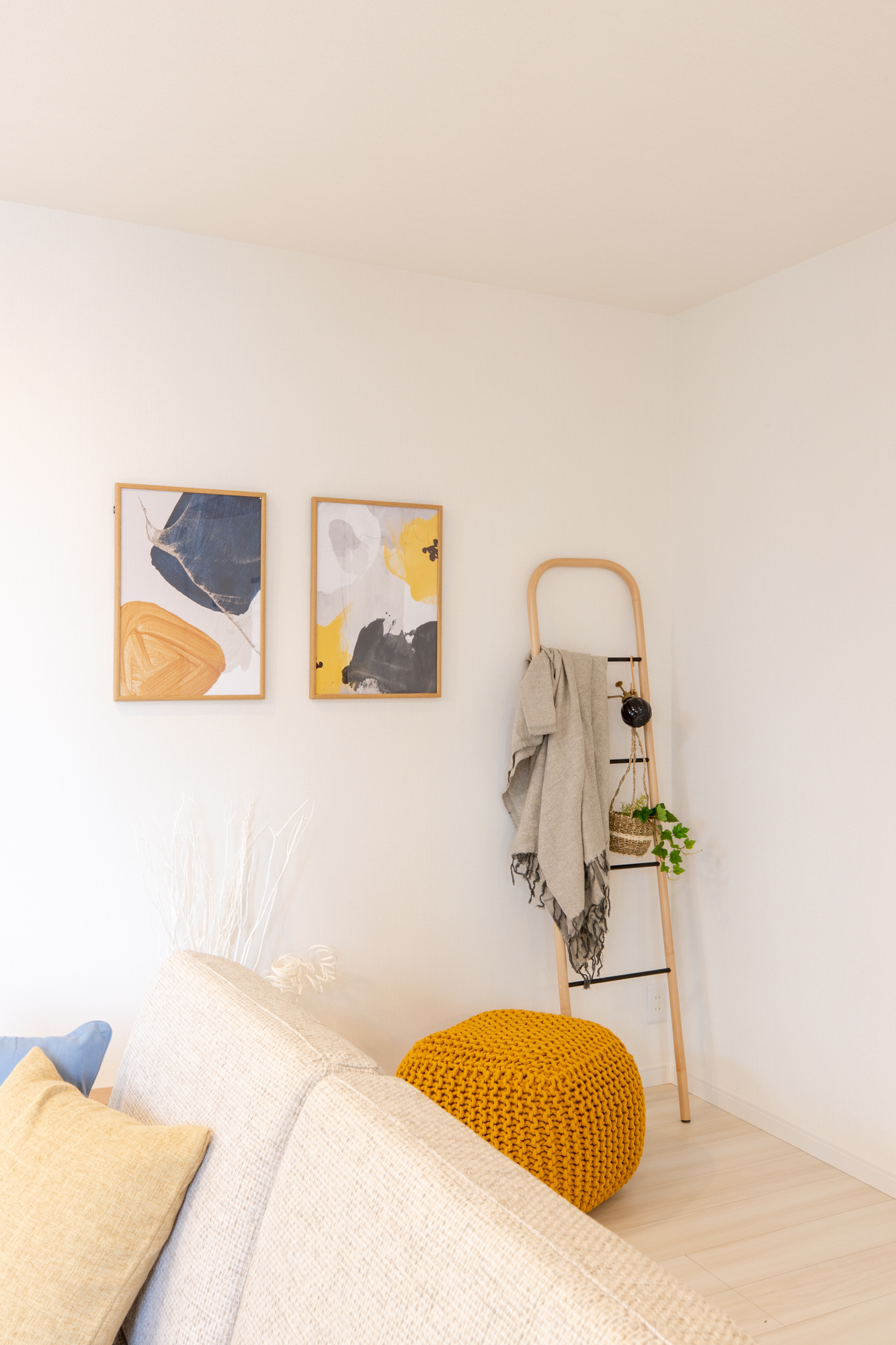 木のぬくもりとナチュラルな素材感を感じる木製家具を中心に、ファブリックや小物でアクセントカラーを織り交ぜました。