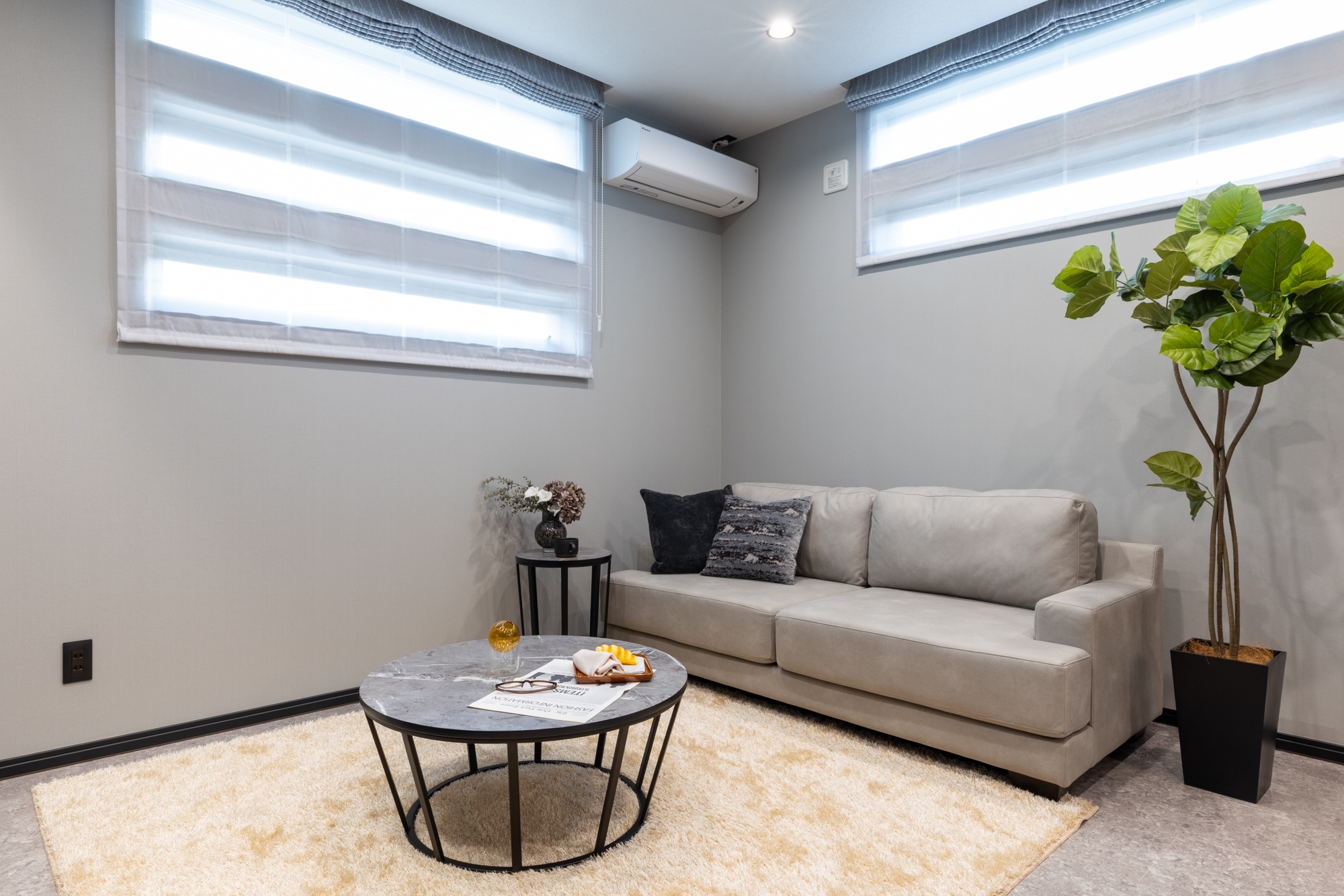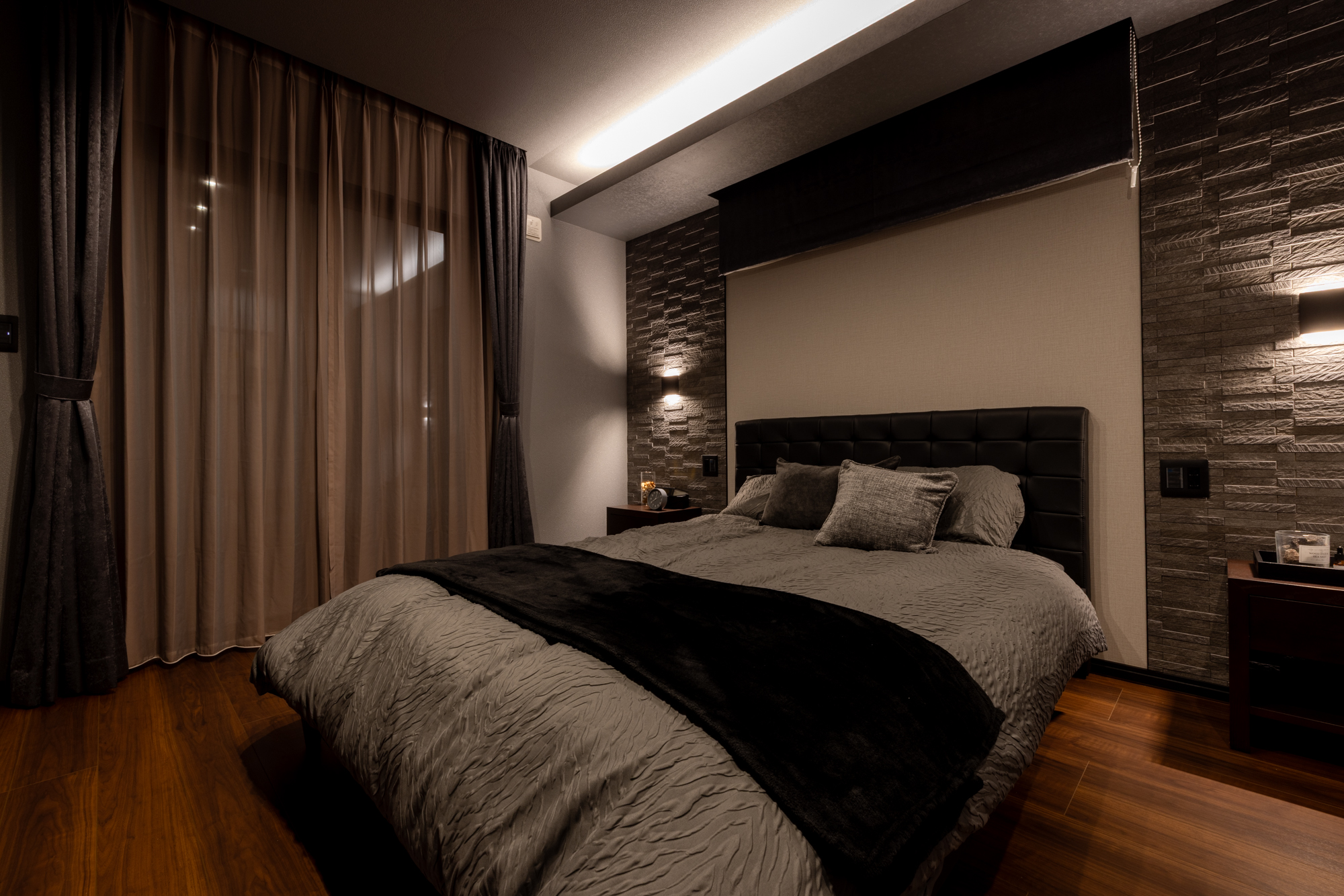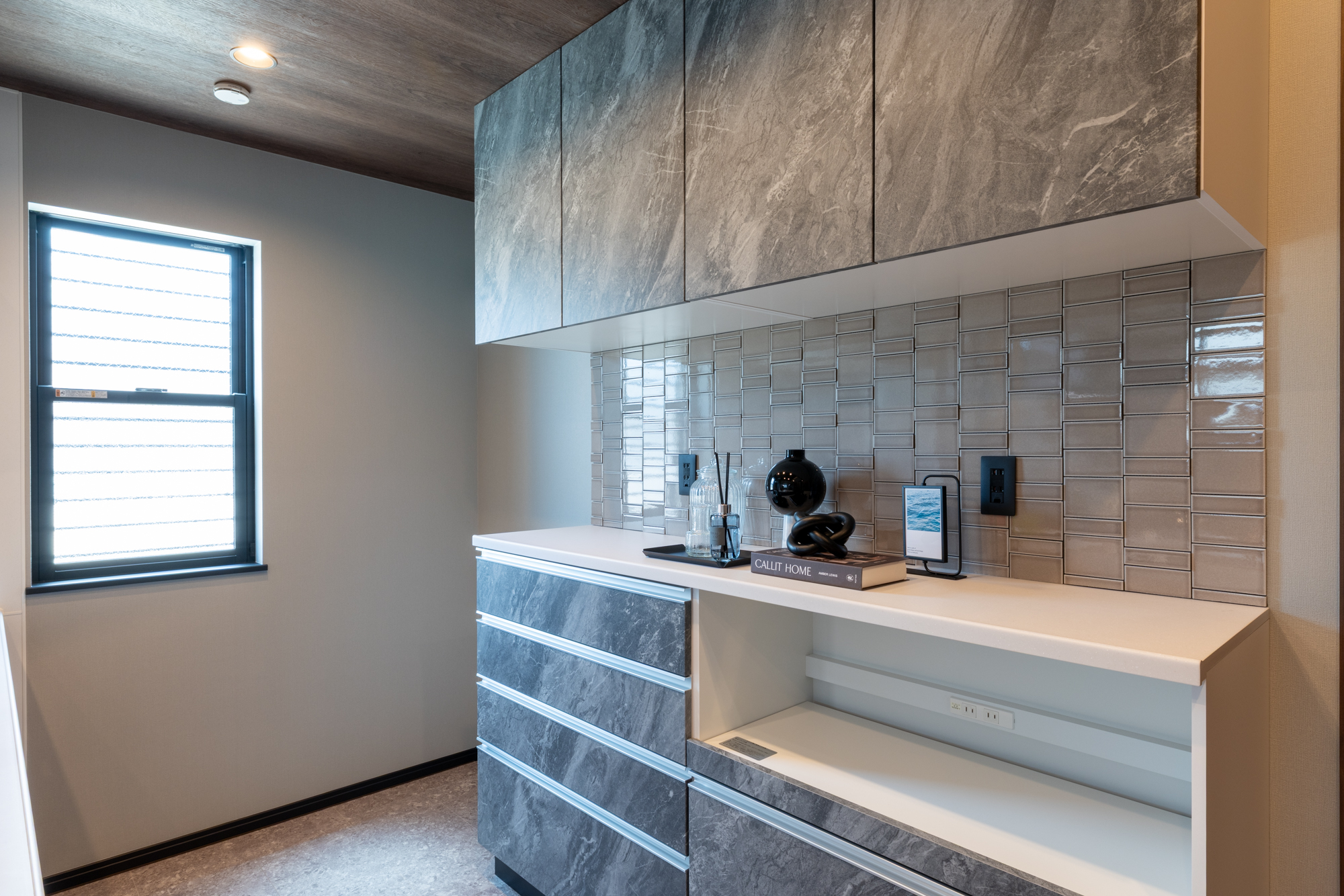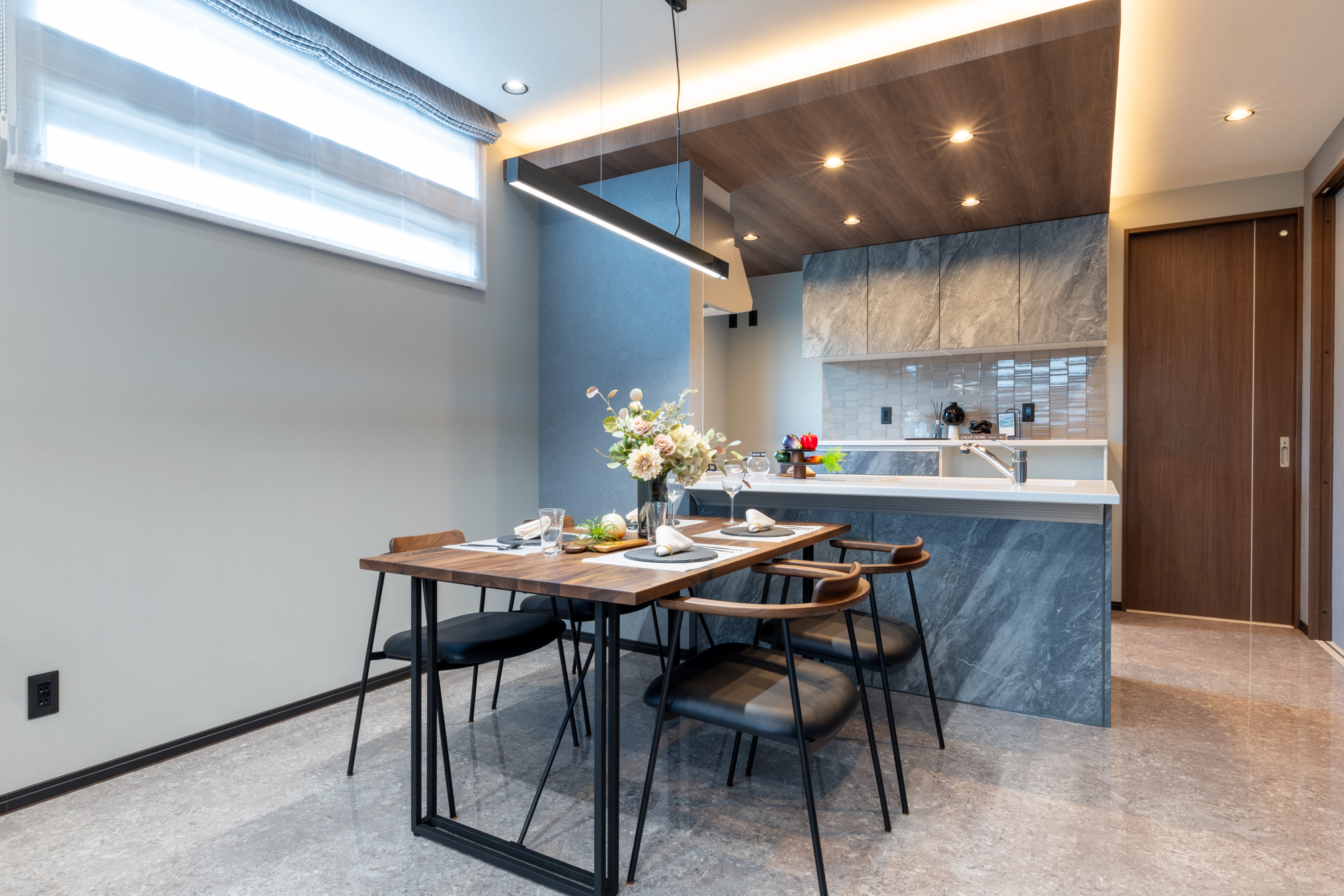 落ち着きのあるダークトーンのホテルライクインテリアを目指したモデルハウスです。