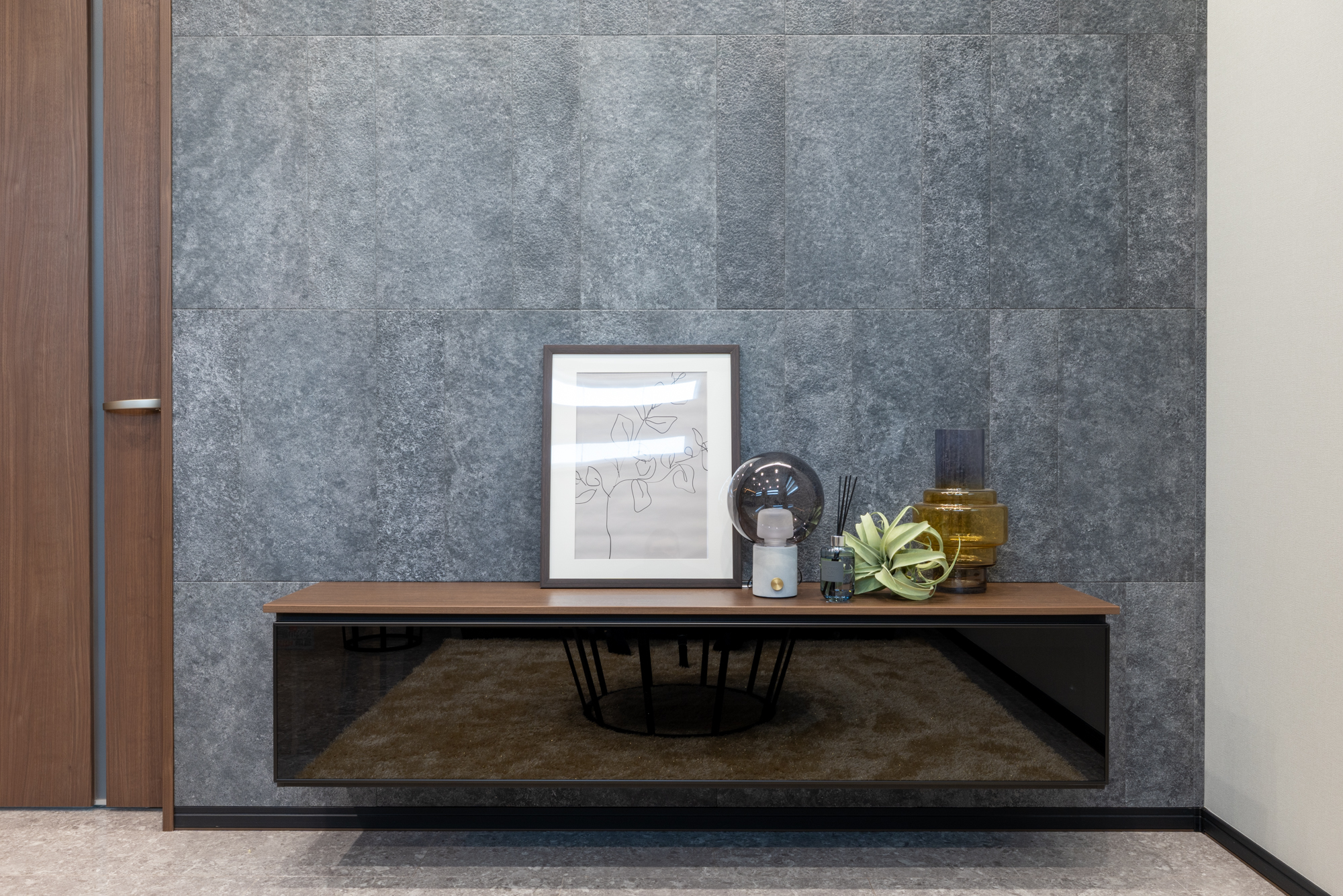 グレー系の内装にウォルナットの木目をアクセントに取り入れました。