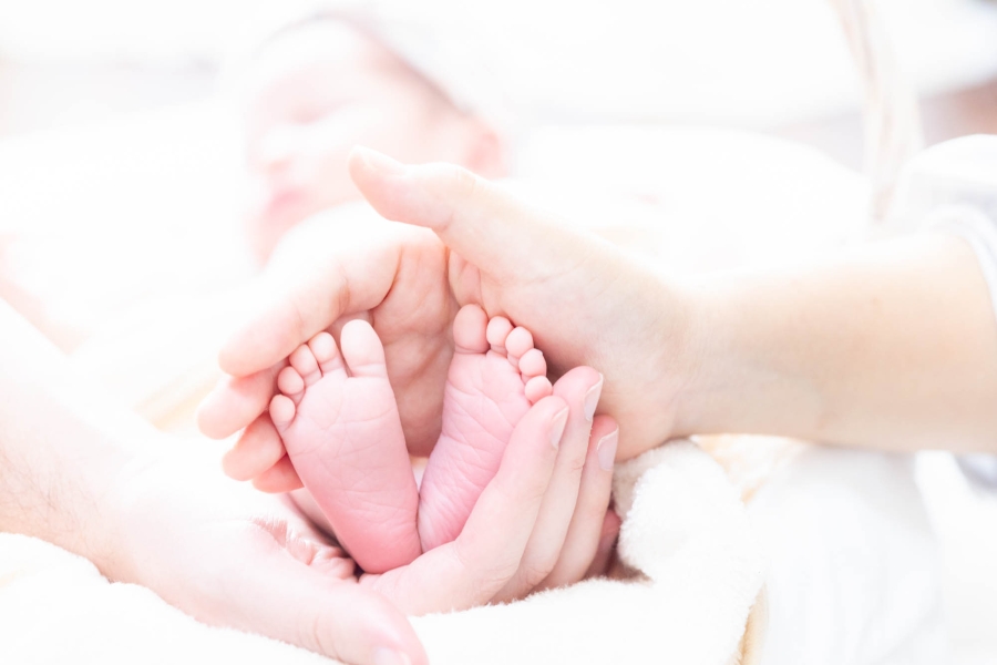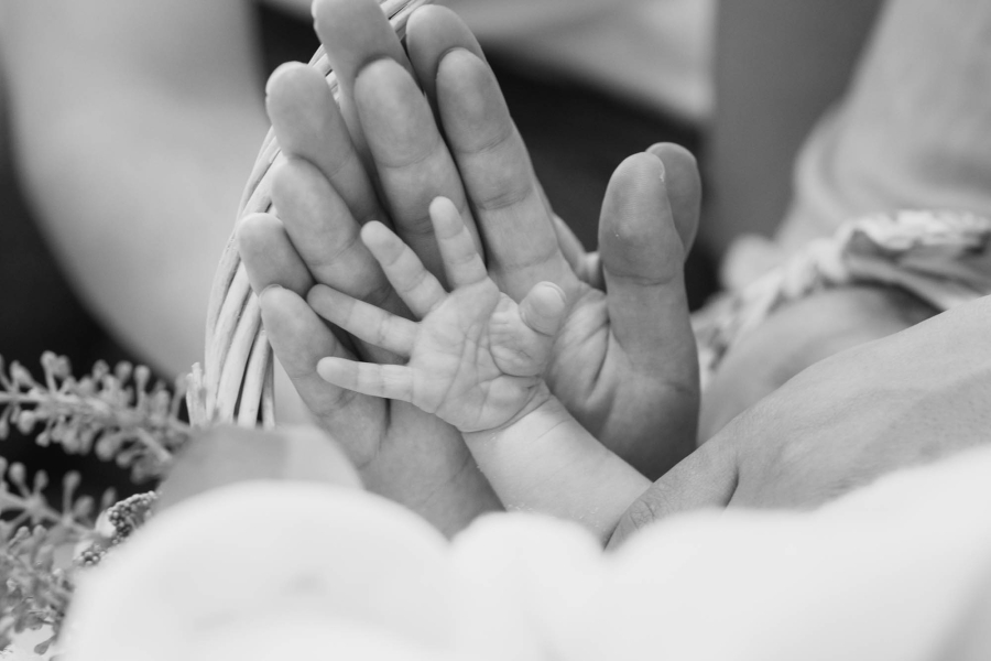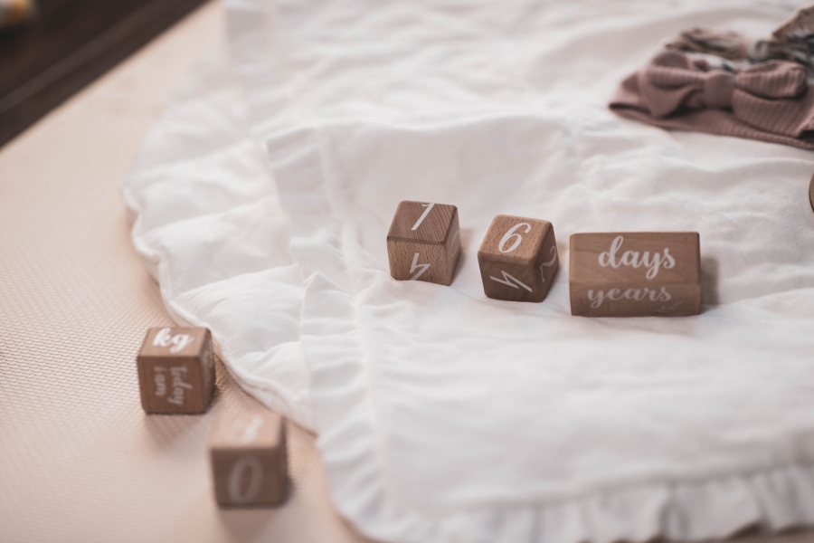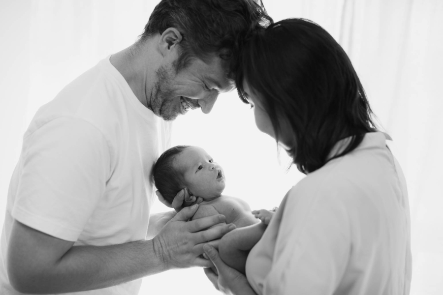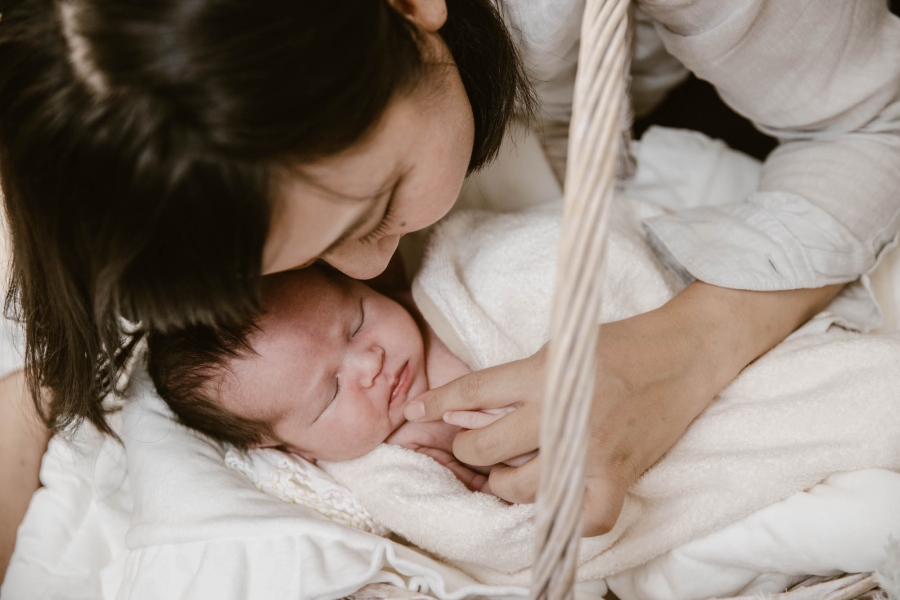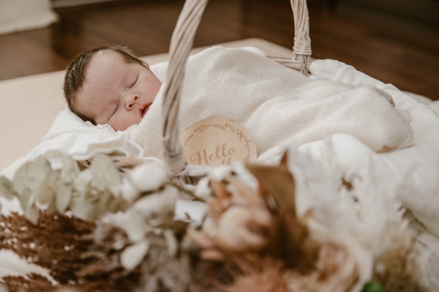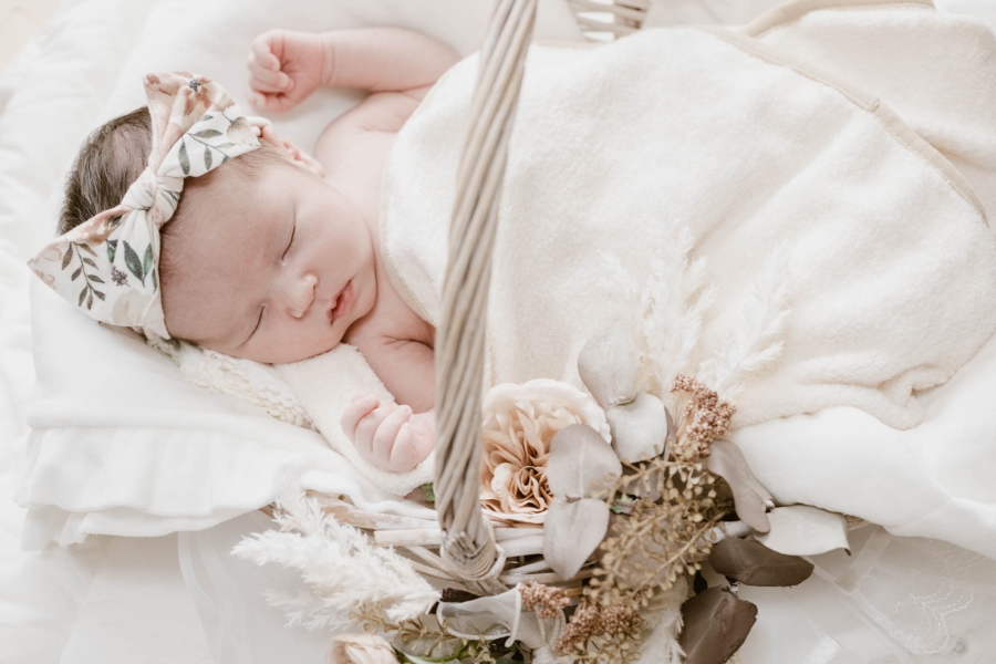 今回のニューボーンフォトでは、結婚式用に制作致しましたウエディングブーケを撮影小物に用いてデコレーションしました。