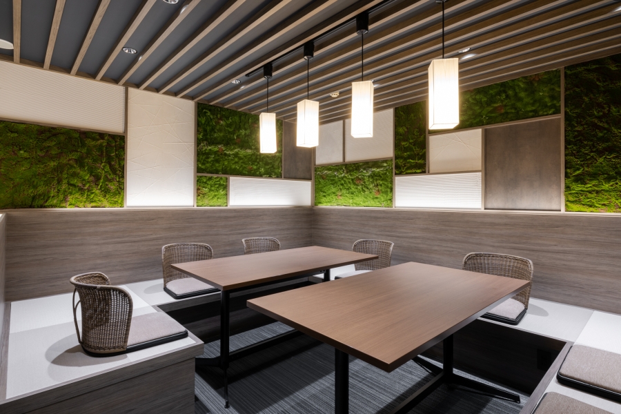 こちらの中会議室は、グリーンを取り入れた和モダンをコンセプトに設計させて頂きました。