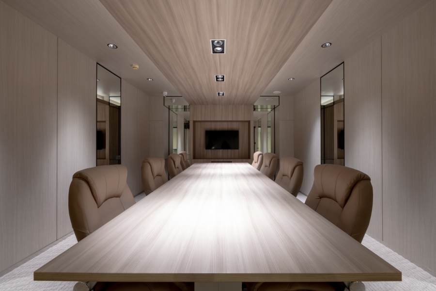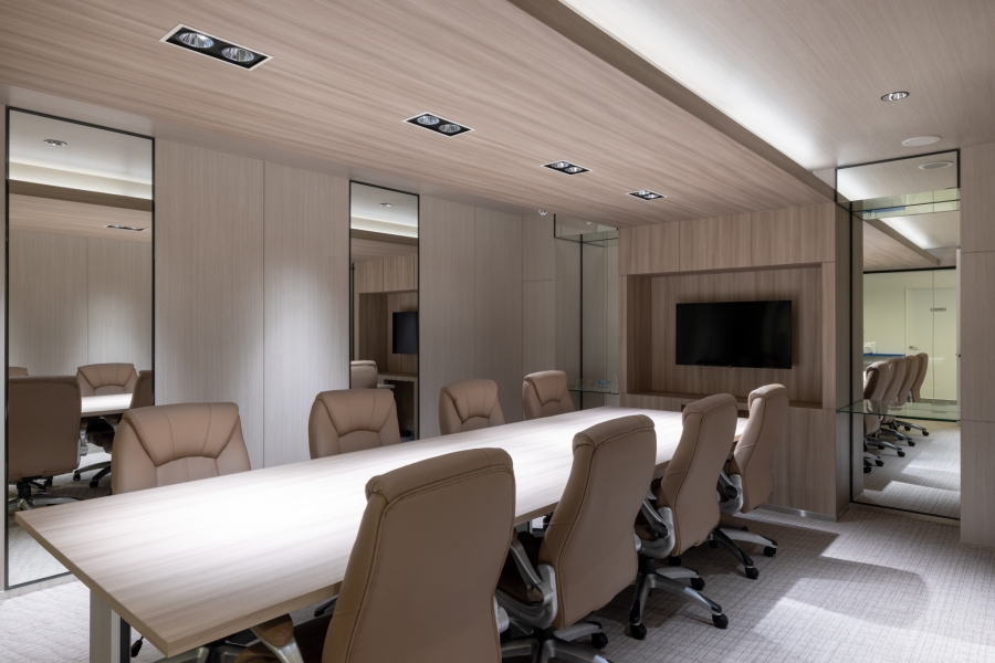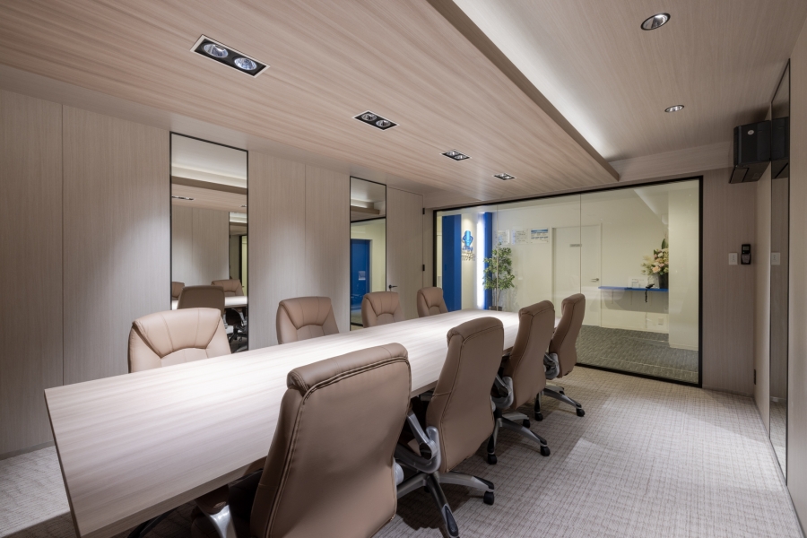 オフィスの移転プロジェクト。デザインをご依頼頂き設計させて頂きました。こちらの大会議室のコンセプトは、スタイリッシュ。