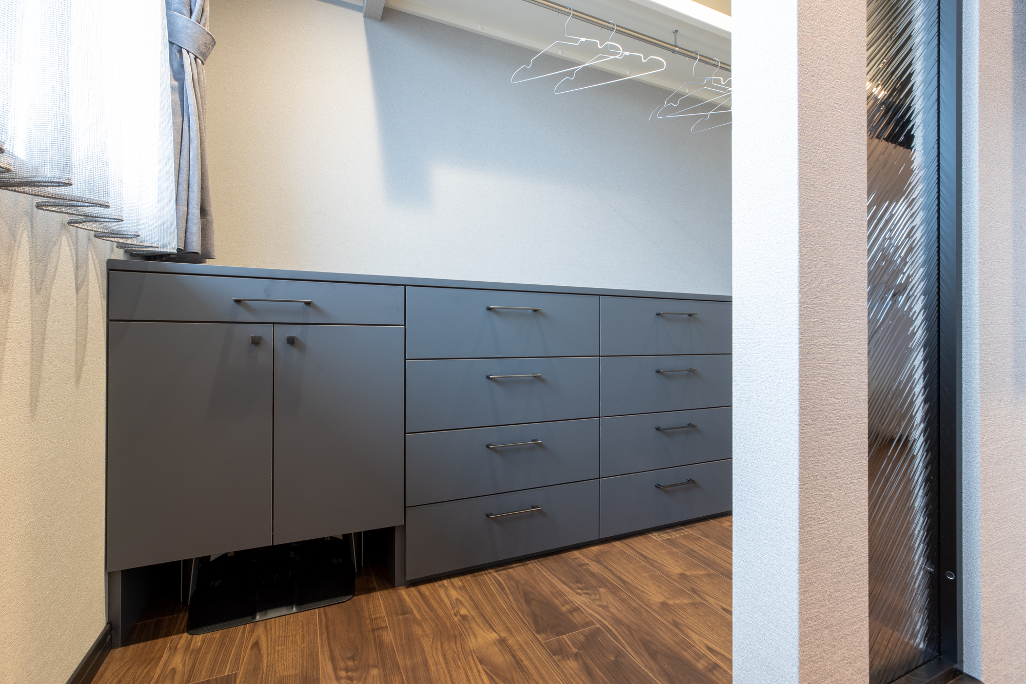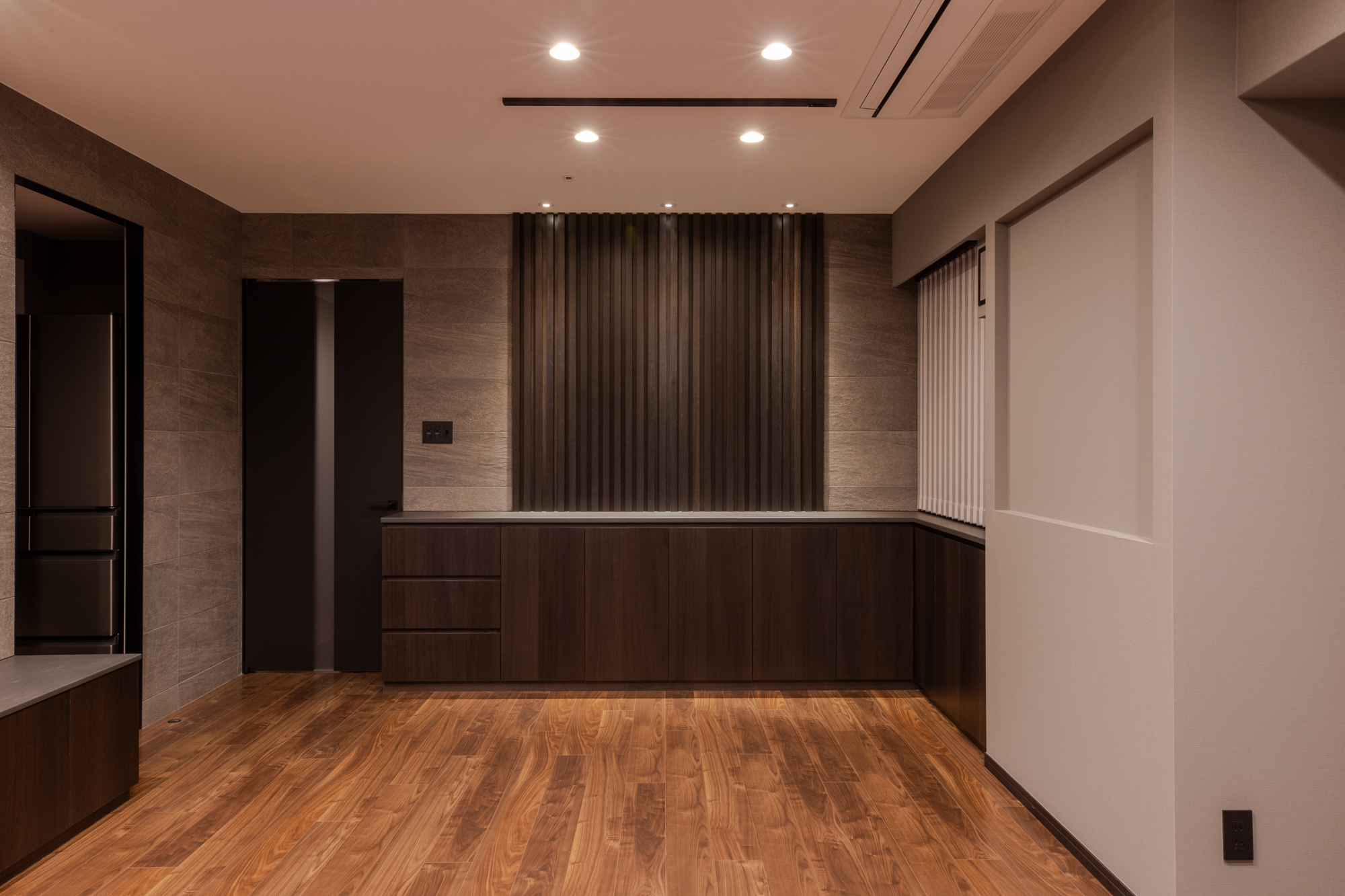 カラーコーディネートはウォールナットの木目の素材感と落ち着きのある色合いでまとめました。