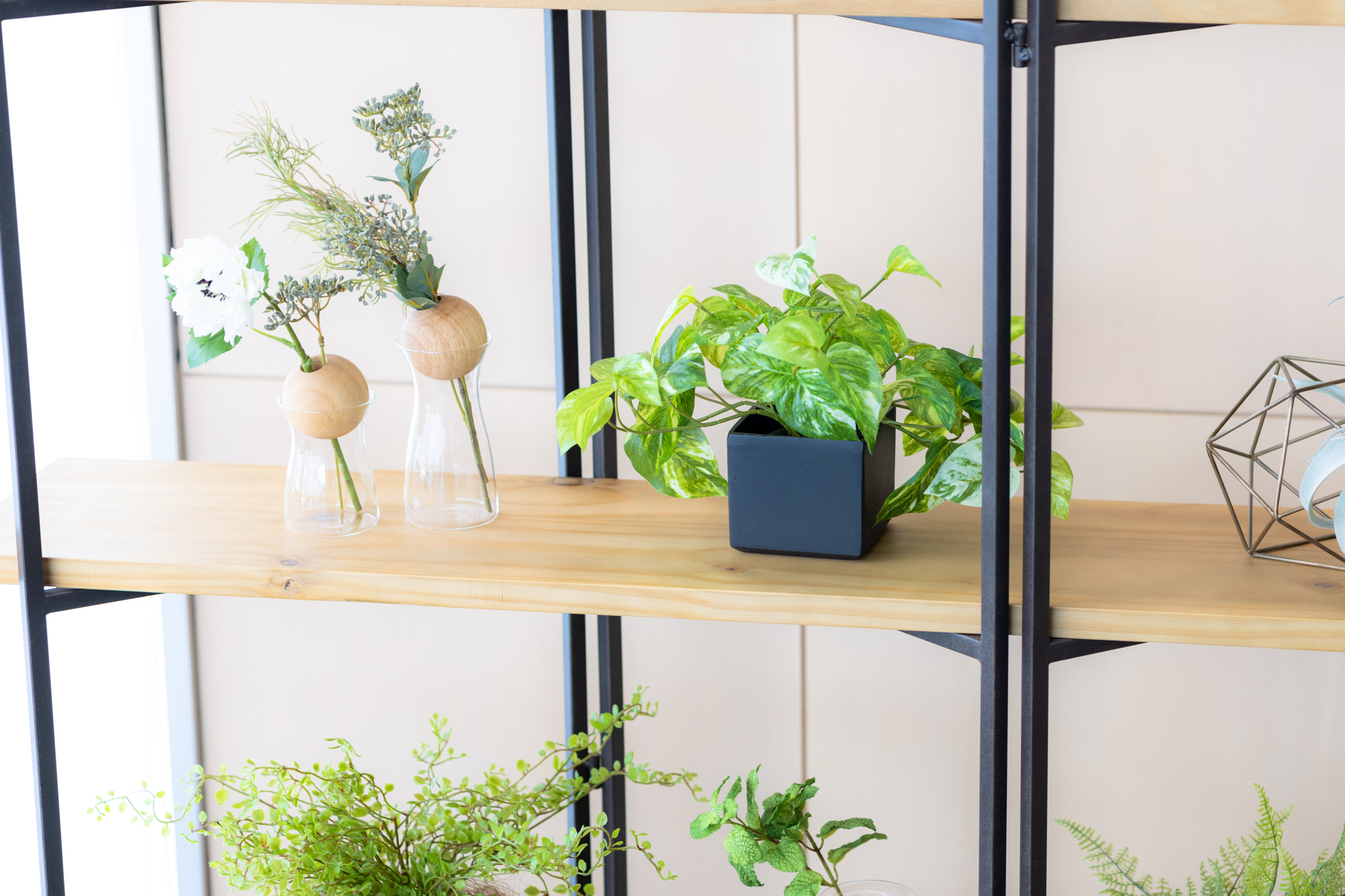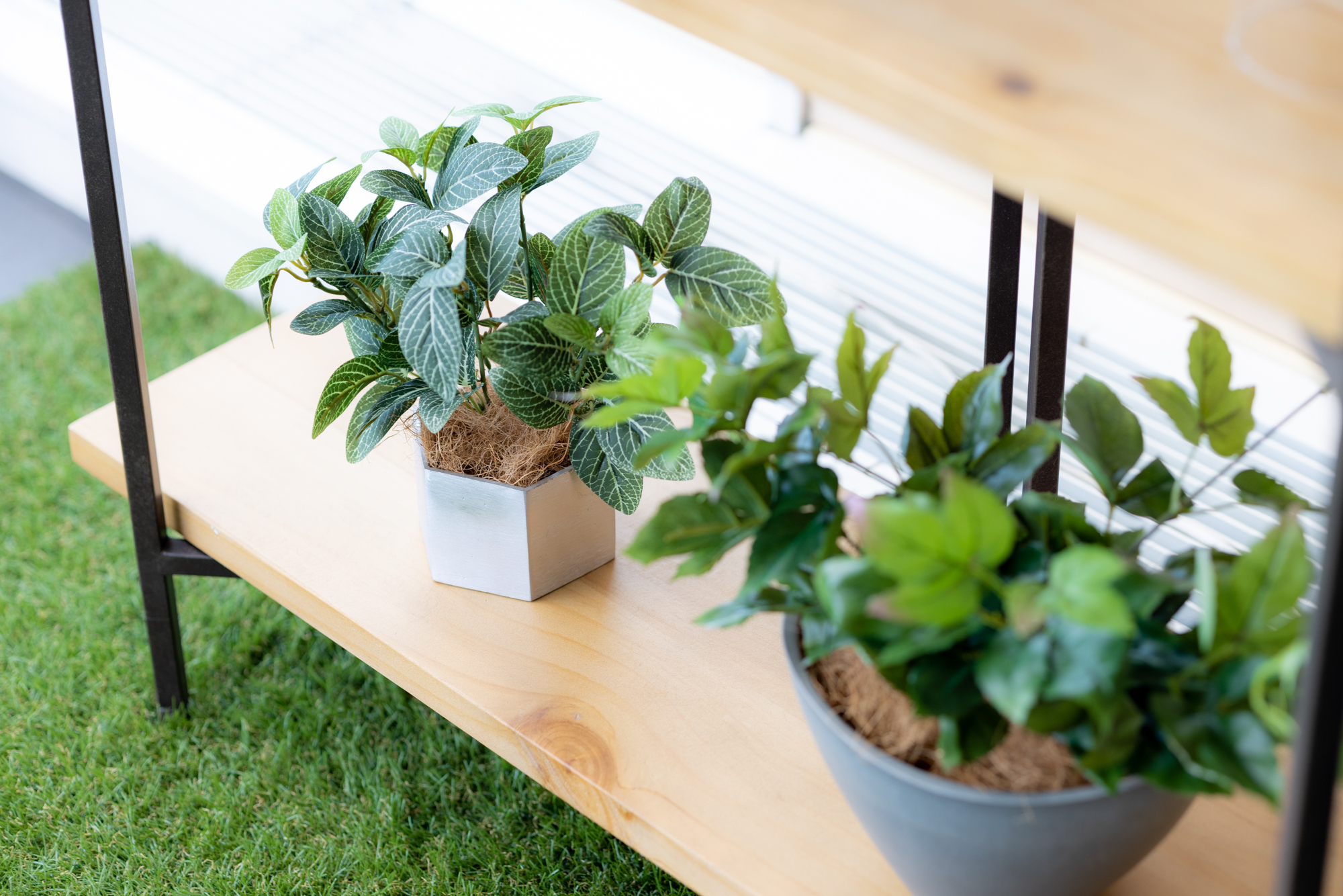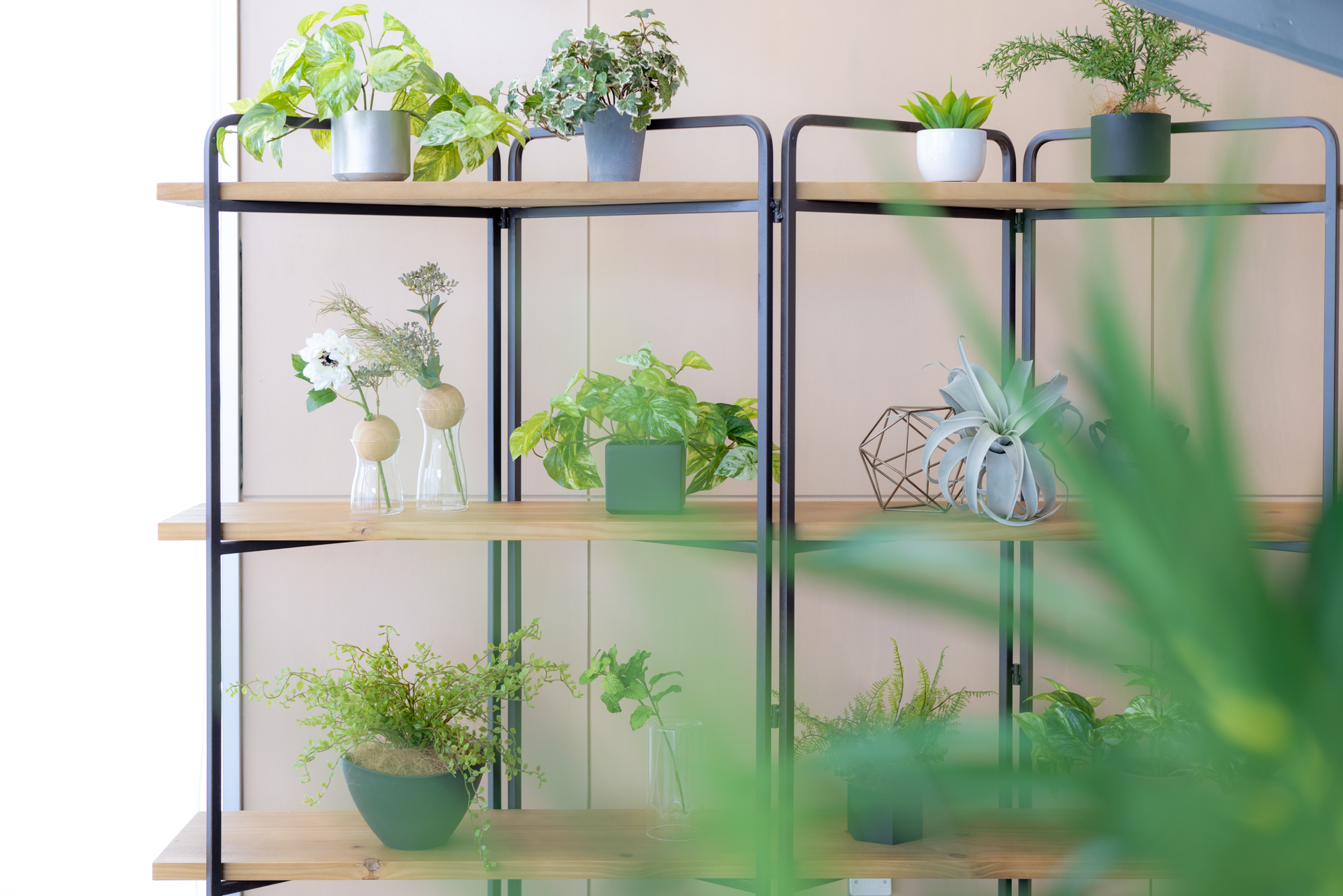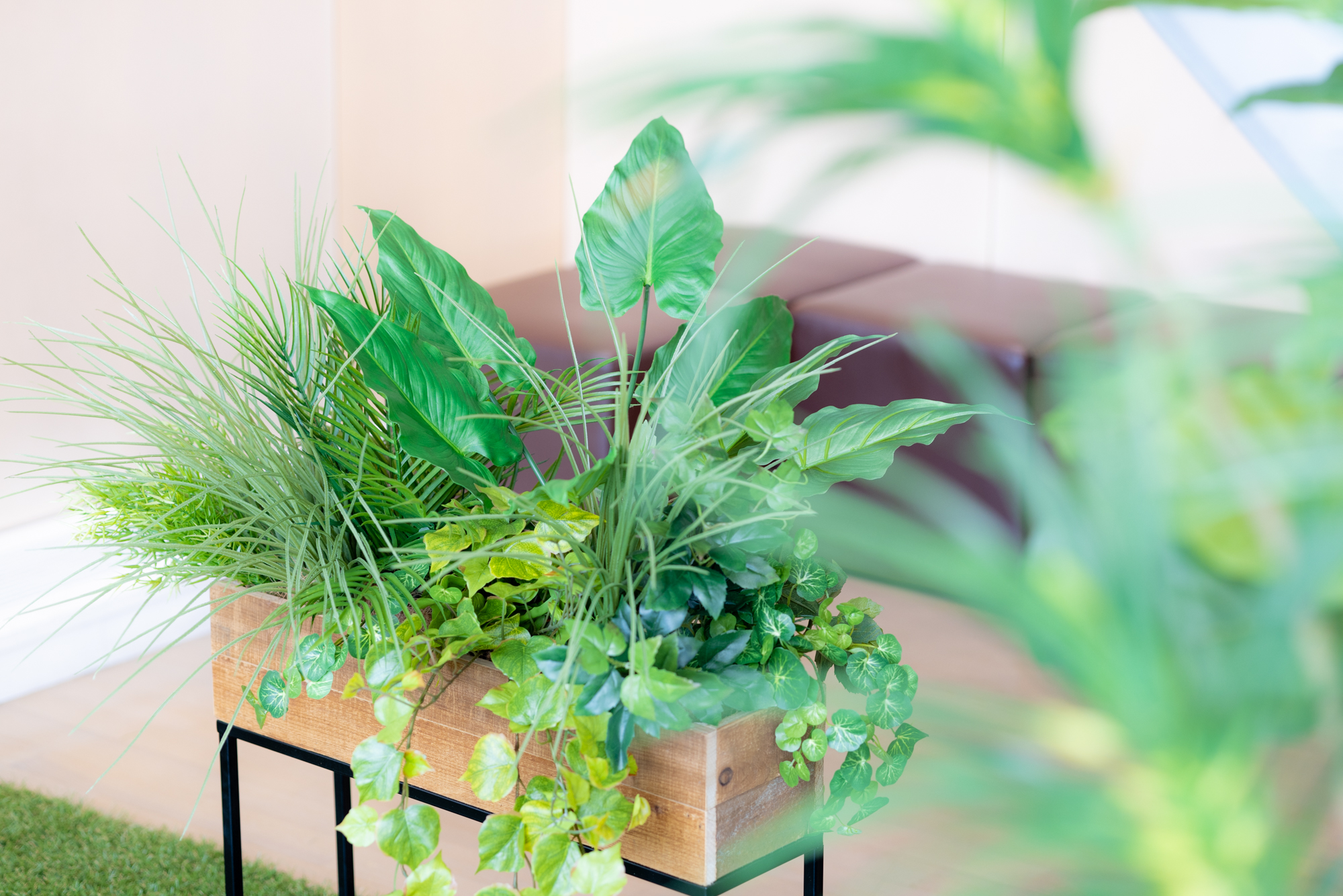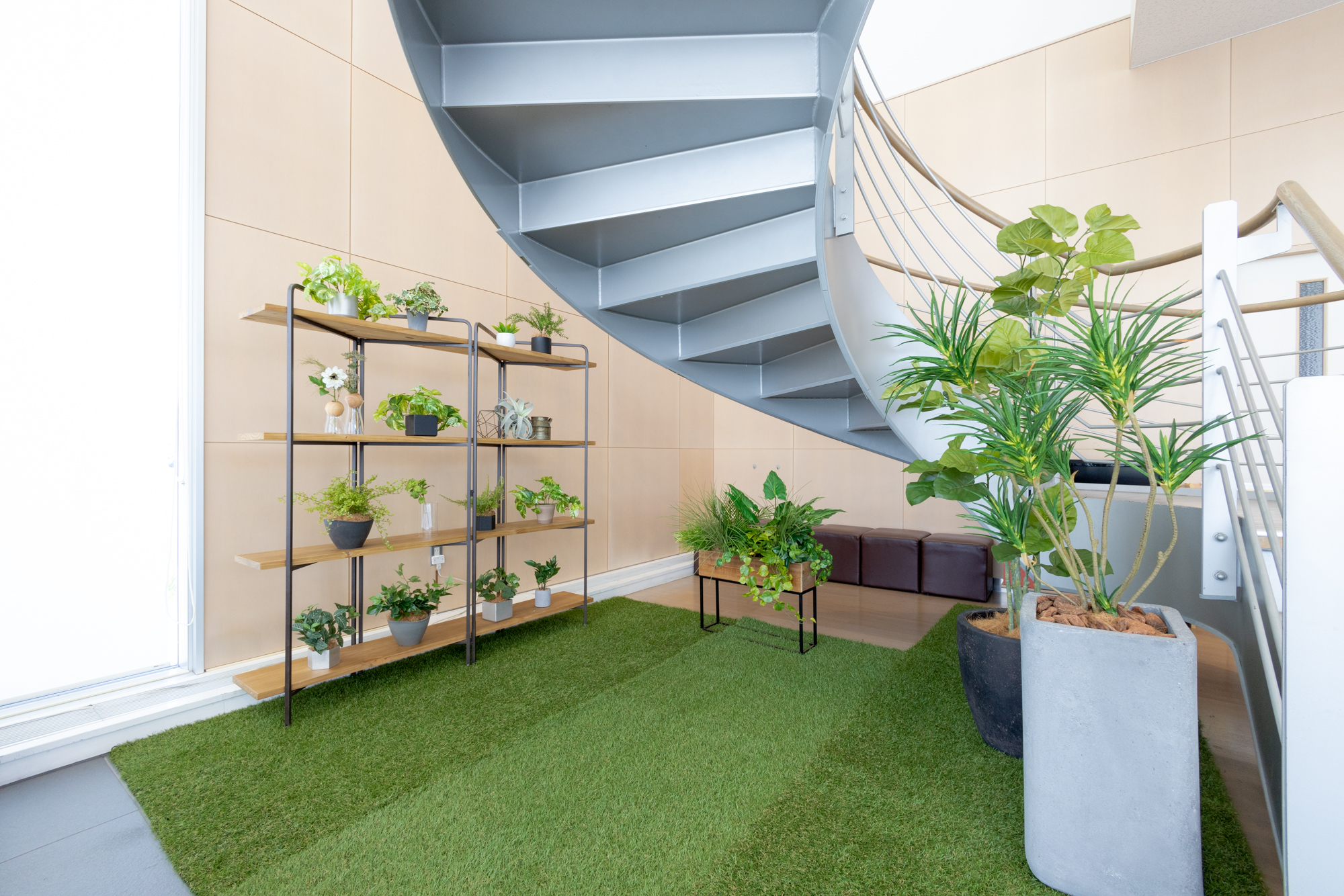 ショールームの一角に制作した、癒しの空間です。すべて造花のグリーンです。